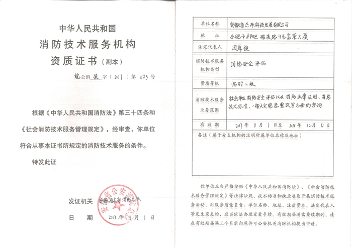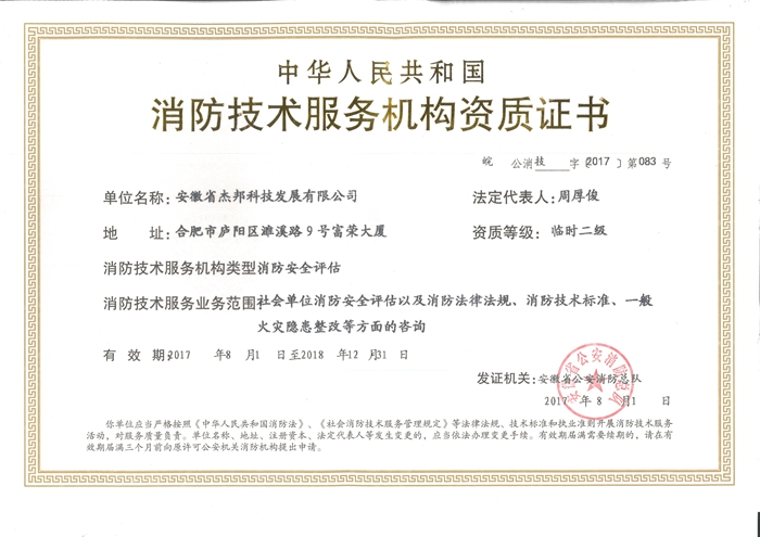 安徽省杰邦科技發(fā)展有限公司為科技型民營企業(yè),2003年11月成立,注冊資本300萬元。辦公場所合肥市廬陽區(qū)濉溪路9號富榮大廈26樓。近20年來,公司長期從事安全評價、安全生產(chǎn)標(biāo)準(zhǔn)化評審、安全咨詢、安全培訓(xùn)、消防安全評估等技術(shù)工作。現(xiàn)有安全評價資質(zhì)證書(編號:APJ-(皖)-018),業(yè)務(wù)范圍:石油加工...